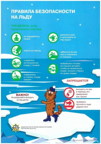 Во время ледостава, до достижения толщины льда 7 сантиметров, а также в период интенсивного таяния и разрушения выход на лед запрещается.