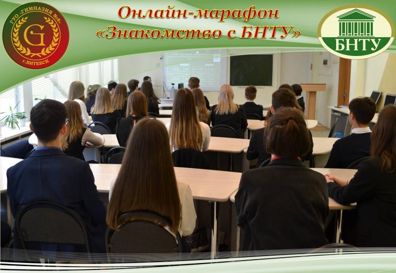 28 февраля 2023 года учащиеся 10 «В» и 10 «Г» классов государственного учреждения образования «Гимназия № 8 г. Витебска» приняли участие в профориентационном онлайн-марафоне «Знакомство с БНТУ».