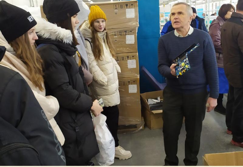 На предприятии учащихся познакомили с изготавливаемой продукцией: телевизионной техникой, бытовой и медицинской техникой, изделиями из пластика, специальным оборудованием и оснасткой, электрическими отопительными котлами, электрозарядными станциями для аккумуляторов электромобилей, а также для зарядки аккумуляторных батарей других транспортных средств на электротяге.