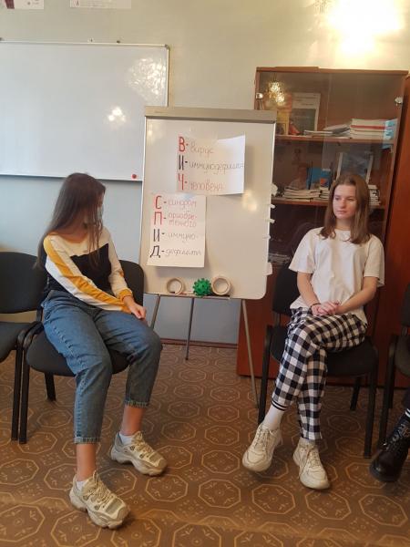 Осенние каникулы ребят из 10 «А» и 10 «Б» классов нашей гимназии начались с ответственного мероприятия – аттестации волонтёров движения «Равный обучает равного» под руководством Ирины Вячеславовны Вертёлко. С испытанием от центра профилактики ВИЧ/СПИД Витебского ОЦГЭ учащиеся гимназии справились на отлично. Ребята провели настоящий семинар, продемонстрировав своим коллегам, волонтёрам со стажем, высокий уровень владения информацией и блестящее умение вести диалог с аудиторией.