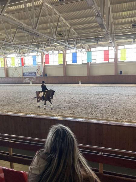 Ребята побывали в Конном манеже, совершили экскурсию в одну из конюшен, посетили соревнования по выездке лошадей и даже сами покатались на лошадях.