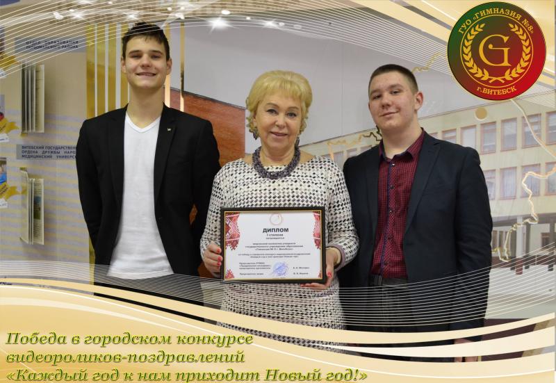 31 января 2023 года государственному учреждению образования «Гимназия №8 г. Витебска» в торжественной обстановке был вручен диплом I степени за победу в городском конкурсе видеороликов-поздравлений «Каждый год к нам приходит Новый год!», который проходил в период с 19 декабря 2022 по 9 января 2023 года.