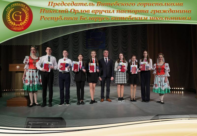 16.03.2023 Председатель Витебского горисполкома Николай Орлов вручил паспорта гражданина Республики Беларусь витебским школьникам