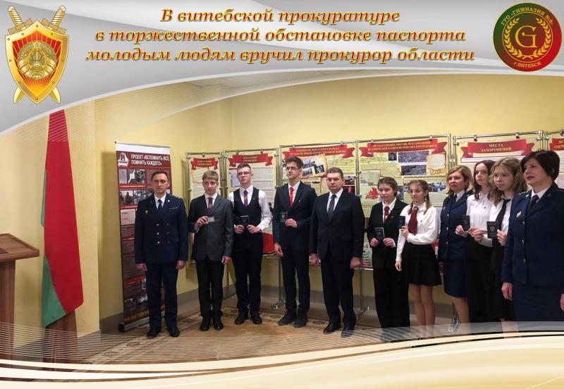 16.03.2023 В витебской прокуратуре в торжественной обстановке паспорта молодым людям вручил прокурор области