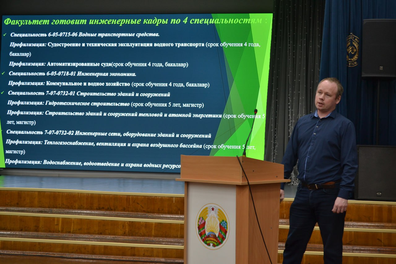 Гости подробно рассказали о специфике обучения на факультете энергетического строительства, а также о направлениях «Гидротехническое и энергетическое строительство» и «Водный транспорт и гидравлика».