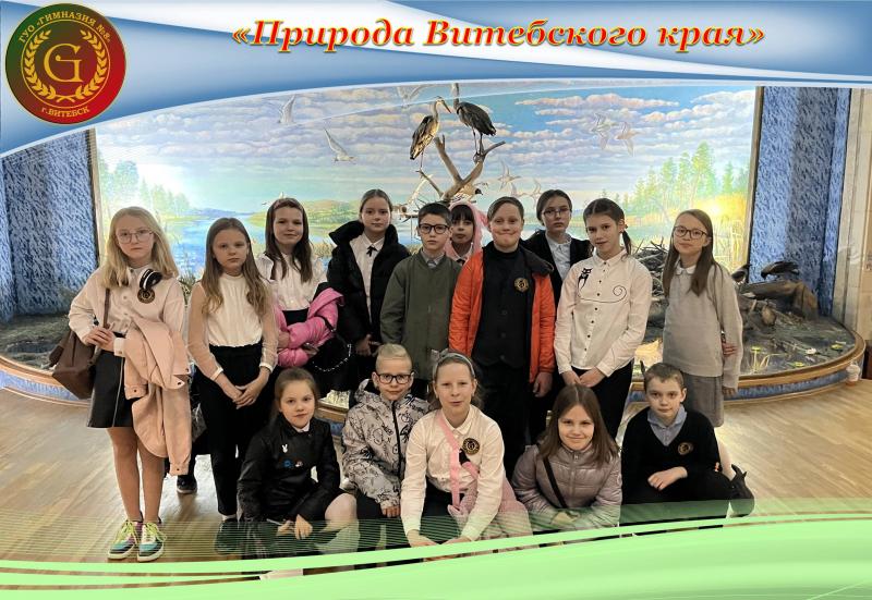 26 апреля 2023 года учащиеся 4 «Д» класса вместе с классным руководителем Белозерцевой Натальей Юрьевной государственного учреждения образования «Гимназия №8 г. Витебска» посетили замечательную экспозицию Витебского областного краеведческого музея «Природа Витебского края».