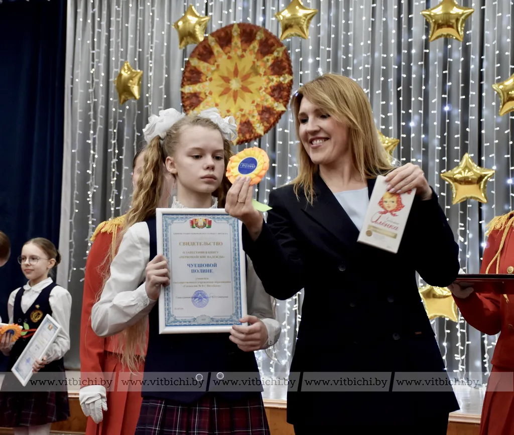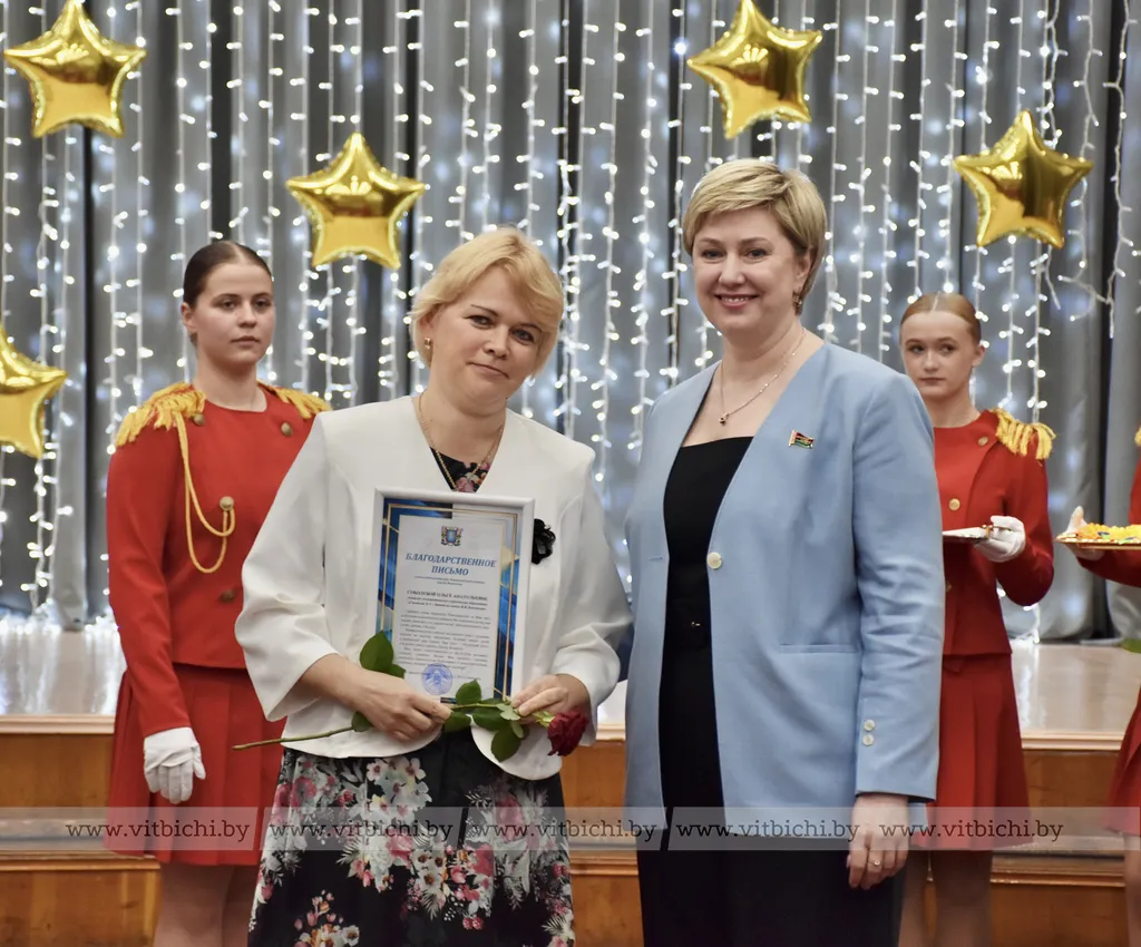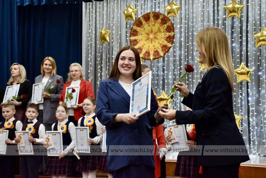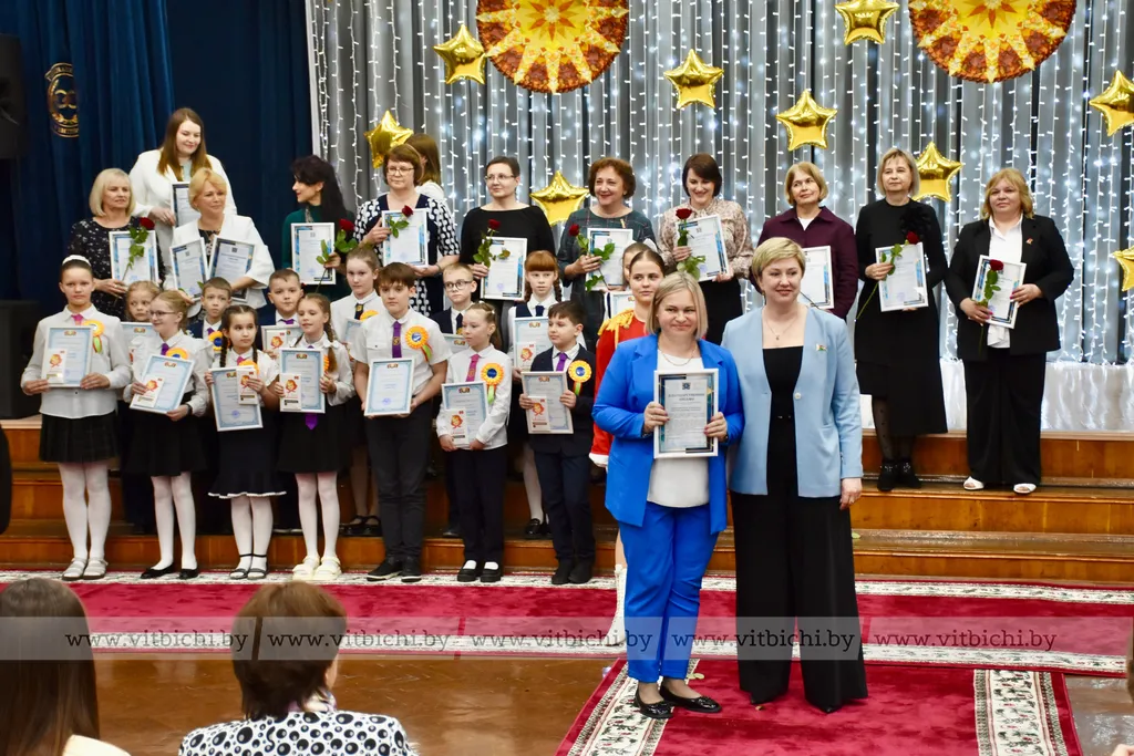 На праздничной встрече Татьяна Лазуркина, депутат Палаты представителей Национального собрания Республики Беларусь Ирина Астапенко, председатель городского Совета депутатов Ольга Иванова и другие гости вручили учащимся, их педагогам и родителям дипломы, именные сертификаты, благодарственные письма.