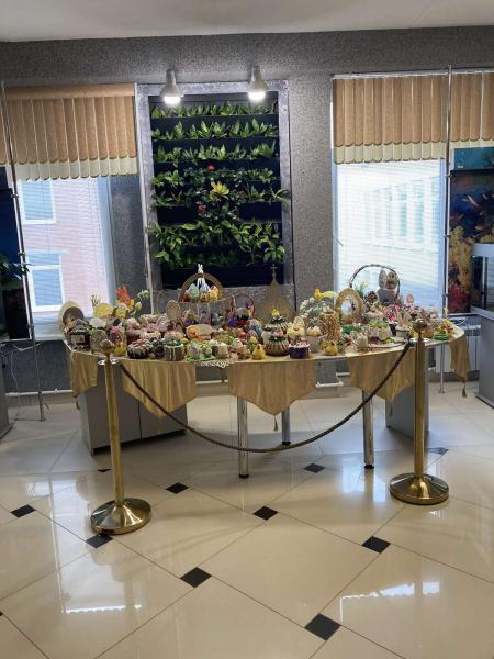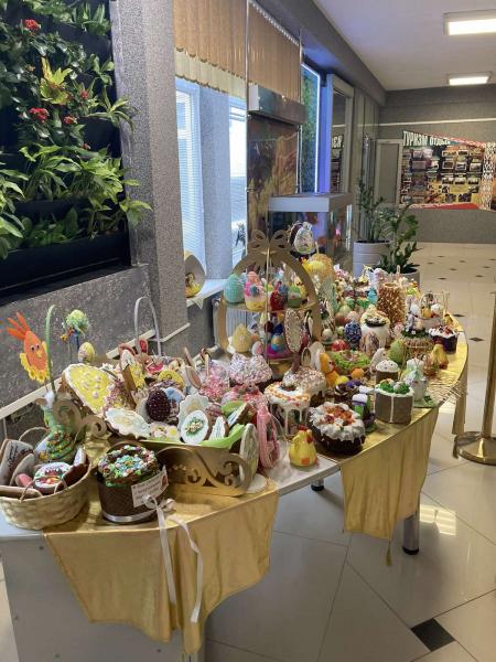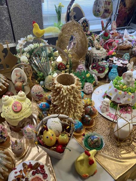 В ГУО «Гимназия № 8 г. Витебска в предпасхальную неделю ежегодно проходит традиционная выставка «Пасха пахнет миром». На этой выставке представлены декоративные яйца, расписные куриные, шоколадные, сделанные из бисера и других материалов; традиционные пасхальные куличи и пряники, а также пасхальные атрибуты в современной интерпретации (например, в виде цыплят, курочек и т.п.). В этом году новинкой стало традиционное праздничное литовское блюдо из яичного теста – шакотис, которое занесено в литовский национальный фонд кулинарного наследия. Авторы всех этих кулинарных и некулинарных пасхальных символов – учащиеся гимназии и их родители. Участвуют в выставке и педагоги, увлекающиеся кулинарным искусством. Выставка пользуется невероятной популярностью и каждый год вызывает неизменный восторг, так как символизирует не только благоденствие и процветание, но и великую силу таланта, творческого огня окружающих нас людей.